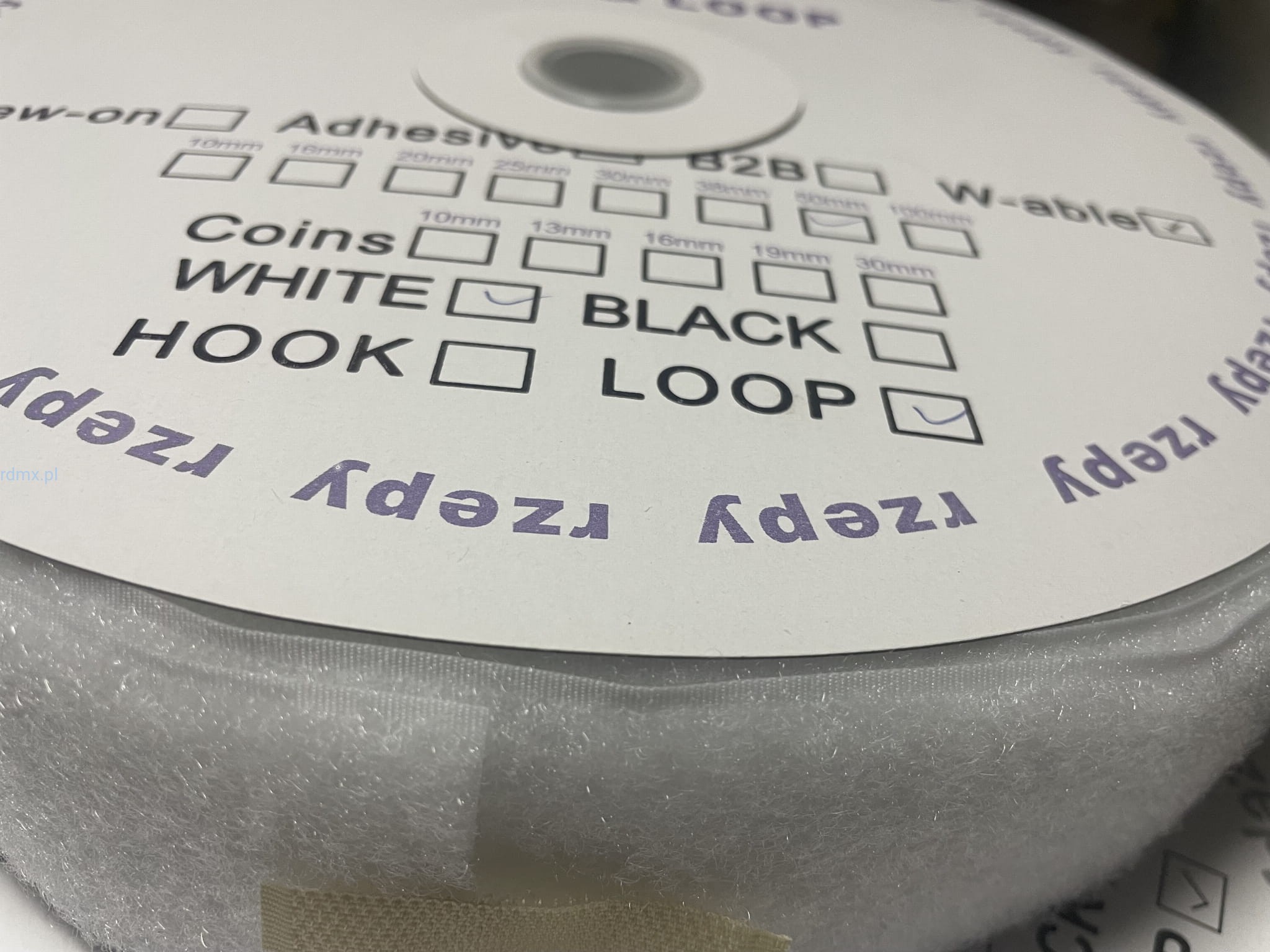 Rzep TERMOZGRZEWALNY 50mm biała pętelka