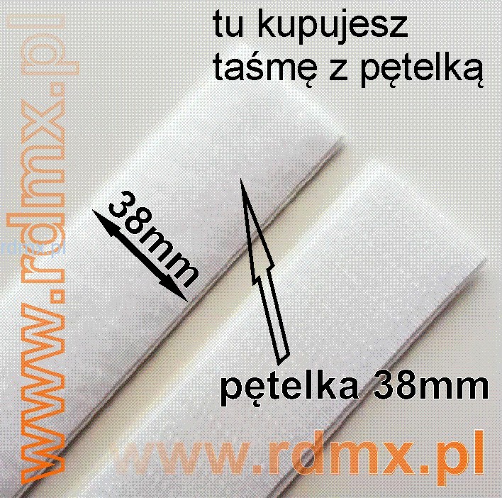 Rzep- taśma o szerokości 38mm, samoprzylepna na kleju kauczukowym na bazie PVC. Biała pętelka.