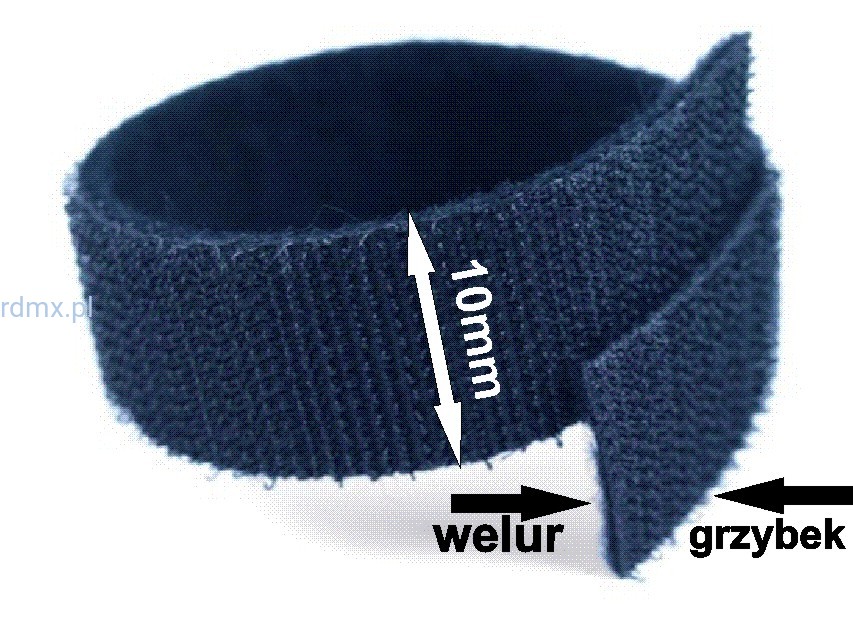 Rzep dwustronny grzybek-welur 100% poliamid- szerokość 10mm. 25MB